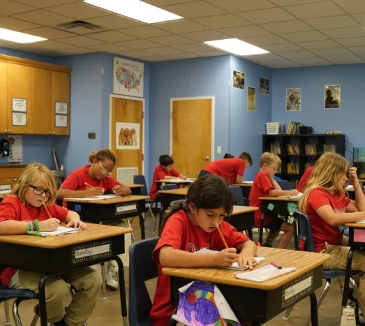 Students are taught to be proficient writers in a step-by-step composition process that includes phrases, sentences, paragraphs, reports, letters, poetry, journals, and short stories. Grammar is taught and stressed in all writing lessons. Students are encouraged to exercise their free expression in creative writing class.